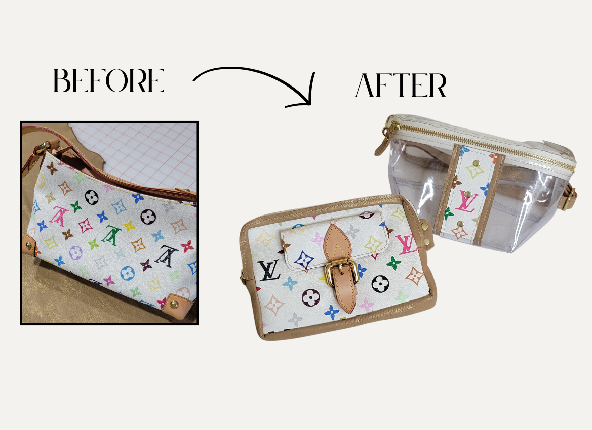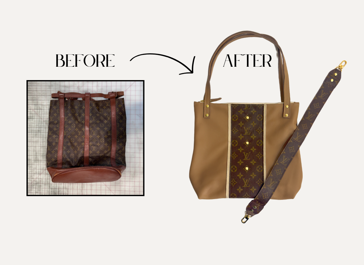 Upcycling a handbag requires more usable canvas than most people realize, and often, the original bag provides just enough material for your selected design. Every upcycle is a custom, one-of-a-kind process crafted with intention and care—using every viable inch to bring your new piece to life.